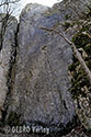 Eine der höchsten Wände im Tal und das direkt im Ort neben der Straße, plattige enorm kompakte Routen, im oberen Teil gibt es in den 2. Seillängen auch einige schwere leicht überhängende Klettereien zu knacken. Keile und Schlingen leisten auch hier ab und an gute Dienste. Dass aber auch an einer so kompakten Wand nicht alles fest ist zeigt der Felssturz von 2014.