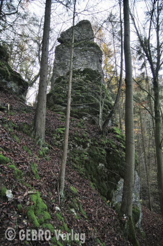 Mit gut 40 m einer der Giganten im unteren Wiesenttal. Leider ist die ausladende und beeindruckende Wand, die im unteren Teil ordentlich überhängt, ein eher schauerliches Gemäuer. Hierher sollten sich nur hartgesottene Alpinfreaks verirren. Die durchweg noch technisch bewerteten Routen sind allerdings enorm großzügig und für den Könner sicherlich ein Erlebnis wie man es in dieser Form in Franken ansonsten eher selten haben dürfte. Beim Klettern ist unbedingt darauf zu achten keinen Steinschlag auszulösen, da die Straße sehr eng an der Wand vorbeiführt.