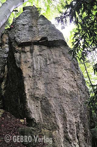 Mit bis zu 16 m Wandhöhe gar nicht mal so kleiner, leicht verwunschen wirkender verwinkelter Felsturm mit zahlreichen einfacheren bis sehr einfachen Routen. Die Absicherung ist aber auch hier nicht übertrieben, die Felsqualität hingegen ist gut.