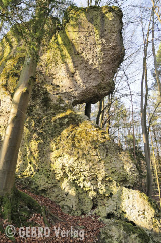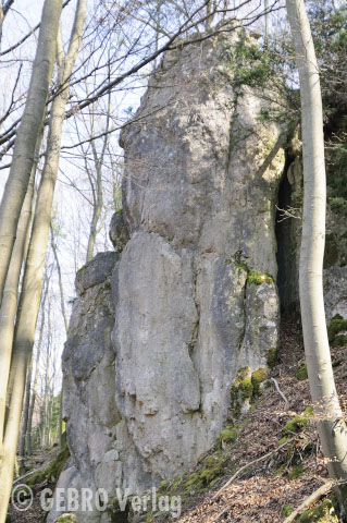 Der Felsturm ist zwar nur gut 12 m hoch doch wirkt er am Ende einer Wiese am Waldrand trotzdem recht imposant. Das Gestein ist bestens und die Routen fordern einen ganz ordentlich. Der Zugang hierher ist etwas weiter als gewohnt doch hat man dafür an der Wand meist seine Ruhe.