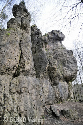 Drei voneinander getrennt stehende, bis zu 20 m hohe Wände bilden dieses Massiv. Kompaktes, eher kleingriffiges Gestein meist leicht geneigte bis senkrechte Wände nur in den seltensten Fällen auch mal überhängend. Dazu jede Menge interessante Routen. An der äußerst rechtenWand gibt es dazu auch noch eine ganze Reihe Routen für Klettereinsteiger. Vor allem die mittlere Wand ist im unteren Wandbereich ziemlich bewachsen. Die Absicherungssituation ist sehr unterschiedlich und reicht von sparsam bis exzellent.
