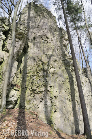 15 m hoher, kompakter Felsturm der teils leicht überhängend ist und ganz nette Routen aufzuweisen hat. Nicht so häufig besucht und deshalb eher etwas staubig.