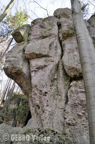 Großes, langgezogenes, bis zu 20 m hohes Massiv direkt am Ortsrand von Leupoldstein. Das Gestein ist vorwiegend solide, teils löchrig, teils aber auch eher kleingriffig glatt. Die Absicherung, vor allem von vielen einfacheren Routen, ist nicht wirklich gut und es gab leider auch hier schon mehr als einen schweren Unfall mit tödlichem Ausgang. Die Routen sind interessant, werden häufig frequentiert und sind deshalb teils schon ziemlich abgegriffen. Man sollte auf jeden Fall einige Klemmkeile und Schlingen mitbringen auch wenn sich diese meist nur schwer zuverlässig legen lassen.